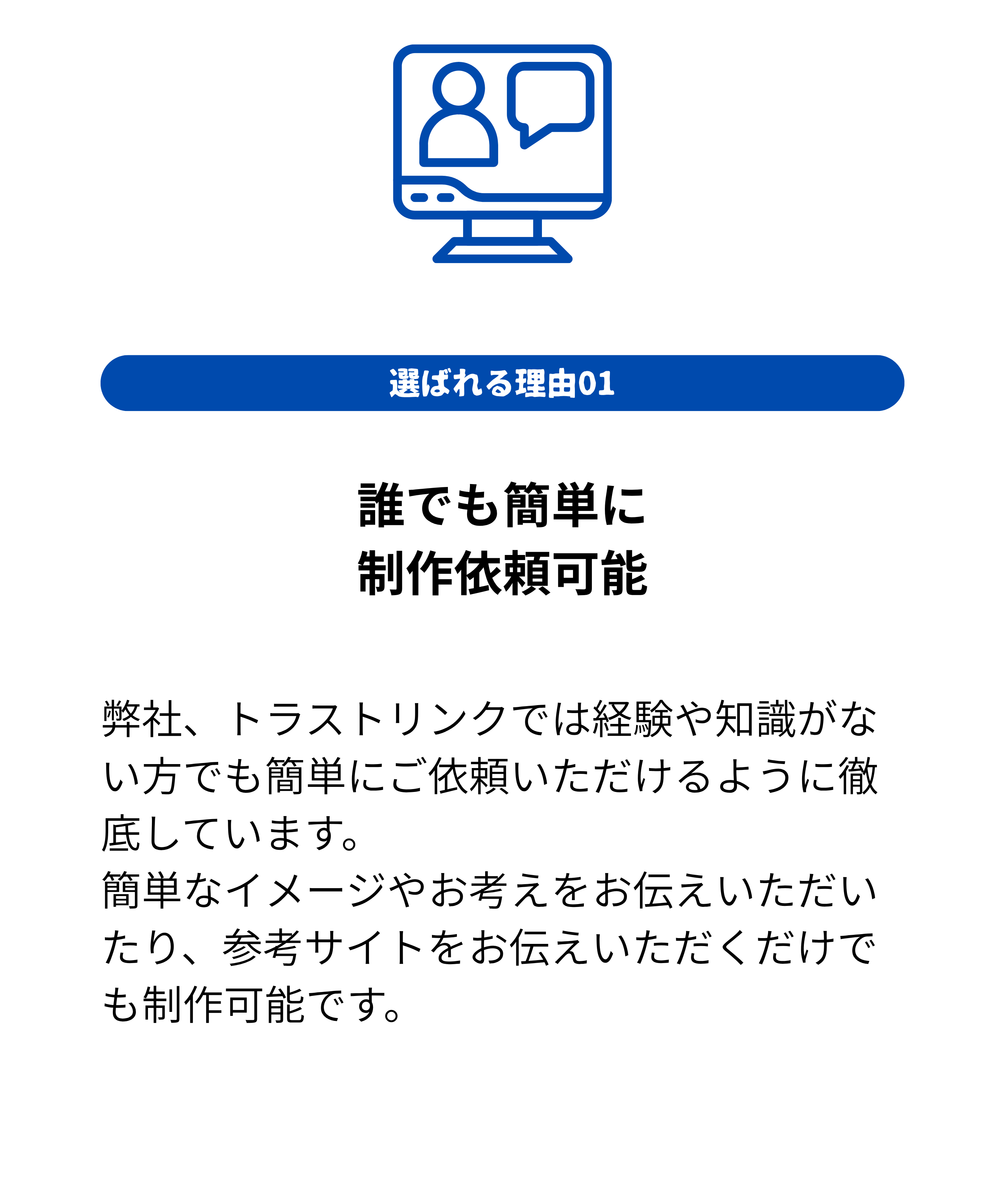 また弊社トラストリンクのホームページ制作はサブスク型のサービスになるので、(プランに応じた)月額費用のみのお支払いとなります。