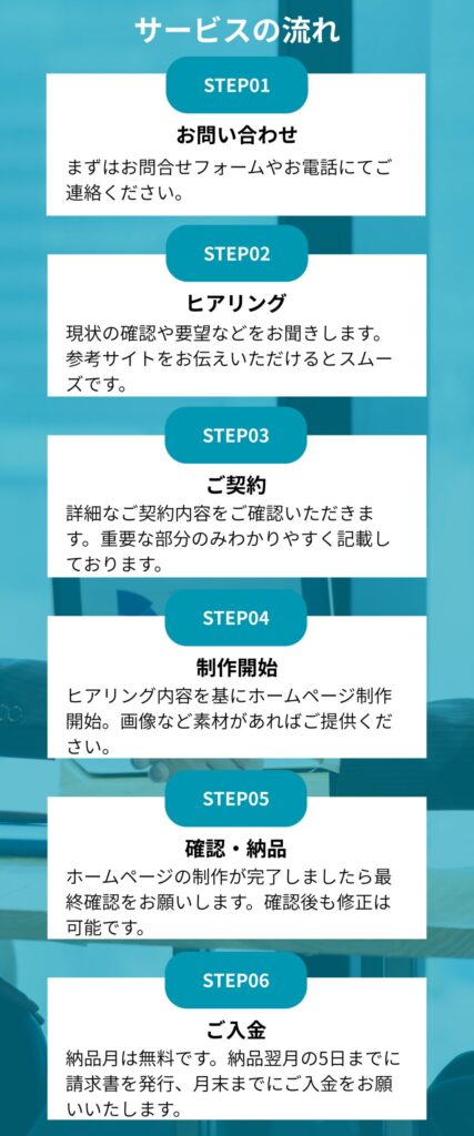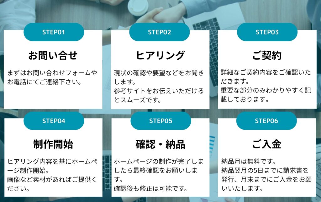 実際にお支払いが発生するのはホームページ公開翌月からとなります。